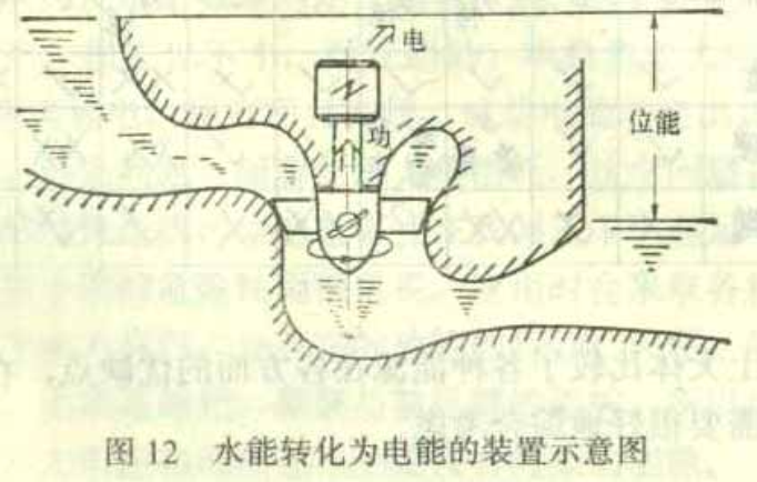 水能利用主要是利用水的位能,水位高,水的位能也大。另外也可以從地心吸力來(lái)解釋,即地球?qū)λ形?,水從高處向下流,?jīng)過(guò)水輪機(jī)發(fā)出機(jī)械功(參看圖12)。水輪機(jī)的輪子上裝有很多葉片,水流過(guò)葉片時(shí)就使輪子轉(zhuǎn)動(dòng),再通過(guò)驅(qū)動(dòng)軸轉(zhuǎn)動(dòng)發(fā)電機(jī)發(fā)電。像這種動(dòng)力機(jī)械的輪子上裝有葉片的統(tǒng)稱為葉輪機(jī)械,葉輪機(jī)械不僅用于水輪機(jī)上,在蒸汽輪機(jī)上也用這種形式的動(dòng)力機(jī)械,蒸汽流過(guò)葉片時(shí)轉(zhuǎn)動(dòng)輪子,帶動(dòng)發(fā)電機(jī)。在燃?xì)廨啓C(jī)中則是燃燒后的氣體流過(guò)葉片轉(zhuǎn)動(dòng)輪子。另外一種類型的動(dòng)力機(jī)械是活塞式發(fā)動(dòng)機(jī),氣缸里有活塞、燃燒后的熱氣在氣缸內(nèi)膨脹,推動(dòng)活塞,活塞再通過(guò)連桿帶動(dòng)曲柄,使它轉(zhuǎn)動(dòng),對(duì)外作功。
