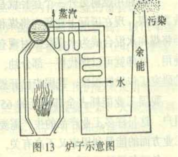 燃料在爐里燃燒,產(chǎn)生高溫氣體,通過(guò)傳熱過(guò)程使水的溫度升高,成為高溫蒸汽,一部分能量則從煙囪排放出去。如果煙氣不加處理,就會(huì)造成污染,例如煤里有硫,硫燃燒生成二氧化硫,它碰上水成為酸雨,對(duì)農(nóng)作物、對(duì)人民健康都有很大壞處。還有氧化氮是可能致癌的物質(zhì),一氧化碳也有毒。即使是二氧化碳,如果在空氣中大量增加,地球溫度會(huì)升高,使生態(tài)失去平衡。要去掉污染,就要采取措施,要花代價(jià)。燒煤的發(fā)電廠,增加這種去污染設(shè)備要增加投資20%以上。污染最好在燃燒過(guò)程中就去掉,這樣就需要科學(xué)技術(shù)(例如采用流態(tài)化燃燒新技術(shù))了。