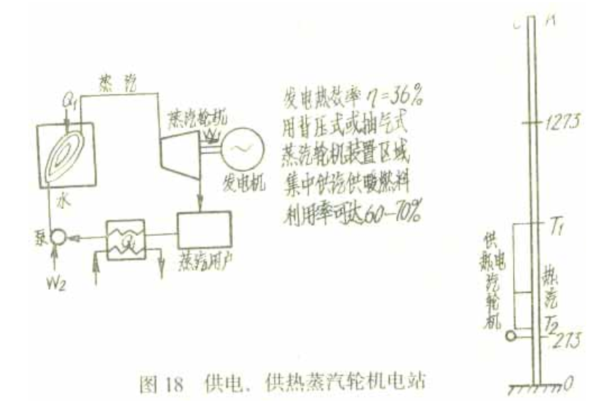 但是,能源利用率提高更多的辦法是把蒸汽輪機(jī)發(fā)電與余熱利用、供熱結(jié)合起來(lái),就是說(shuō)既供電、又供熱,這樣燃料的利用率就很容易達(dá)到60%。假如把燃料在鍋爐內(nèi)燒掉只是為了供生產(chǎn)用或供暖用的蒸汽,即使燃燒效率很高,鍋爐效率99%,實(shí)際上從熱力學(xué)第二定律來(lái)看仍然是一種浪費(fèi),在爐中燃燒后的高溫氣體加熱水使產(chǎn)生溫度和壓力都比較高的蒸汽,讓它先通過(guò)蒸汽輪機(jī)發(fā)電,排出的蒸汽溫度還足夠高,可以供生產(chǎn)用或者用來(lái)供暖。這樣燃料的能量利用率就大大提高。這比把燃料分開來(lái)燃燒,一部分燃燒產(chǎn)生蒸汽到蒸汽輪機(jī)去發(fā)電,另一部分燃燒產(chǎn)生蒸汽供熱,要合理?,F(xiàn)在很多國(guó)家都在想法做到不是單純發(fā)電,也不是單純供熱,而是把兩者結(jié)合起來(lái),梯級(jí)使用。很多工業(yè)部門都可以考慮這樣來(lái)使用。如化工工業(yè)、鋼鐵工業(yè)、煉油、紙槳造紙、紡織、食品加工工業(yè)等部門都可以用。他們本來(lái)就要電、熱或蒸汽,過(guò)去他們可能是向電網(wǎng)要電,而自己再燒些燃料來(lái)生產(chǎn)蒸汽。假如把兩方面的要求結(jié)合起來(lái),燃料在鍋爐里燃燒后,傳熱給水變成蒸汽,蒸汽先在蒸汽輪機(jī)里膨脹做功,帶動(dòng)發(fā)電機(jī)。排出的蒸汽再到熱交換器產(chǎn)生較低溫度的蒸汽或熱水等。這樣燃料總利用率就可以提高到60%以上。