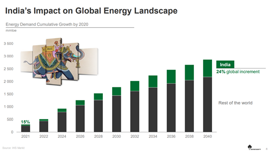談到納倫德拉先生提到的印度是一個朝天的太陽神戰(zhàn)車的形象,我們可以肯定地說,印度經(jīng)濟的發(fā)展將對全球能源的形象產(chǎn)生相當(dāng)大的影響。