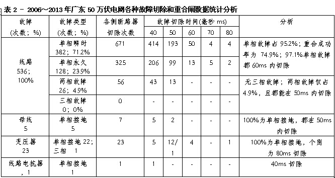 表2表示2006~2013年廣東50萬伏電網(wǎng)故障快速切除又有極高的重合成功率,證明更保證分區(qū)的安全。