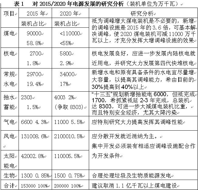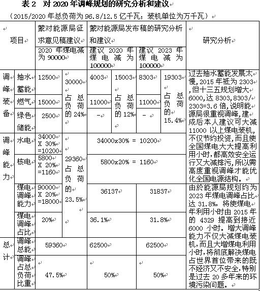 能源局現(xiàn)發(fā)布稿很重視調(diào)峰,"十三五"開始將徹底解決,表1已列出能源局(發(fā)布稿)2015和2020年裝機和本人研究分析,將抽水蓄能由原2015年2303萬千瓦增大到4003/8303萬千瓦,最大增幅3.6倍;又將燃氣機組由原6600萬千瓦增大到11000萬千瓦,增幅1.7倍;充分發(fā)揮大增調(diào)峰設施的效果,經(jīng)本人分析其效果還可將煤電年利用小時由4329提高達到近6000小時,更將可大減煤電裝機,本人前報告曾建議取消"十三五"全部煤電裝機,但因為有的已經(jīng)批準,所以建議"十三五"煤電裝機可大減11000萬千瓦以上,不僅節(jié)約投資,而且使全國煤電大大提高利用小時,都將高效安全運行又大減排污,的確高度重視調(diào)峰才能優(yōu)化全國電源結(jié)構(gòu)。