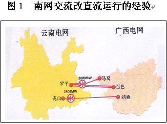 必須重視36年來主要貫徹《電力系統(tǒng)安全穩(wěn)定導則》,才使我國成為世界安全首位的關鍵,因此今后我國必須繼續(xù)嚴格貫徹。因為南方電網(wǎng)繼續(xù)認真貫徹《穩(wěn)定導則》,隨電源/負荷增長需要,采用直流隔離再分2~3個分區(qū),既縮短交流線路輸送距離,又解決交直流并列的不安全問題,已經(jīng)能源局批準,又計劃用直流背靠背再將[廣東分東西兩個小區(qū)],既能控制短路容量增長,又解決將來更多直流饋入各小區(qū)等一系列安全問題。特別是現(xiàn)已實現(xiàn)第一步將云南長距離送廣東由交流改為直流,(圖1)大大提高整個南網(wǎng)結(jié)構(gòu)的可靠性,并解決交流輸電的固有穩(wěn)定缺陷,原交、直流并列運行時如直流故障,負荷轉(zhuǎn)移到交流就會穩(wěn)定破壞。所以這個交流改為直流經(jīng)驗現(xiàn)在就值得全國推廣。