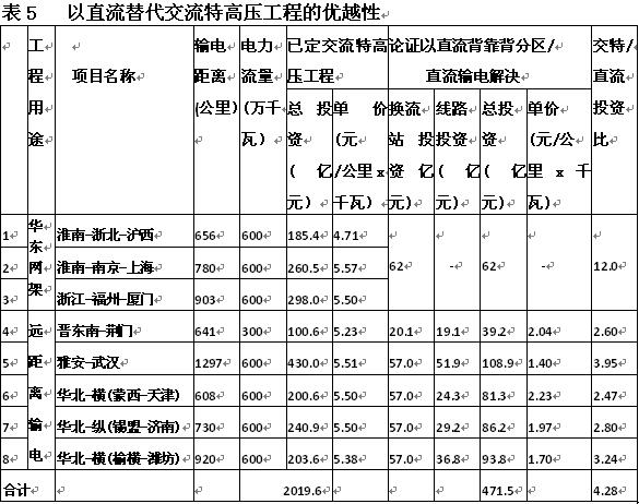 表5以直流代替現(xiàn)有的交流特高壓工程的投資估算方法是來自2012年10月電規(guī)總院和西南、中南、廣東電力設計院的<南方電網(wǎng)中長期網(wǎng)架結(jié)構(gòu)研究>。