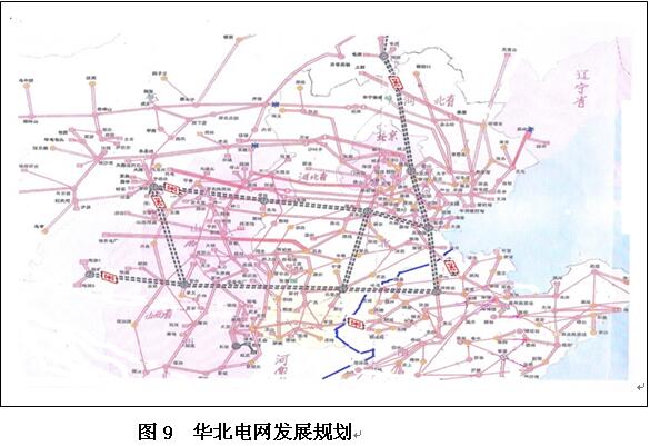 華北電網(wǎng)和華東不同,華東各區(qū)將來除接受遠來直流輸電外,各區(qū)電力相當自發(fā)自用,分區(qū)區(qū)間不需要傳送大電力,所以適宜分區(qū)大大提高可靠性。但華北的北京和天津市主要依靠外送,特別是靠很多密集的交流500kV線路從山西、河北輸送電力,所以難以分區(qū),華北祗有采用兩個背靠背就可以和山東電網(wǎng)實行分區(qū)。