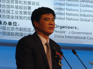 中國(guó)在發(fā)展綠色經(jīng)濟(jì)的過(guò)程中,需要引進(jìn)國(guó)外的戰(zhàn)略投資者,也就是在技術(shù)、市場(chǎng)和管理等方面能夠提供幫助的投資者,我希望有關(guān)的跨國(guó)公司能夠抓住機(jī)遇,積極參與中國(guó)綠色經(jīng)濟(jì)的發(fā)展,為應(yīng)對(duì)全球氣侯變化作出貢獻(xiàn)。我的發(fā)言完了,謝謝大家!