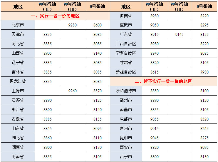 | 供軍隊(duì)等部門(mén)用90號(hào)汽油(Ⅱ) | 7730 | 8080 |