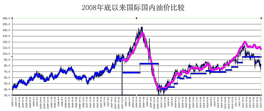 答:2008年底成品油價格和稅費(fèi)改革方案實(shí)施以來,國內(nèi)成品油價格進(jìn)行了十六次調(diào)整,其中十升六降,價格總水平有所上升,但這主要是由于國際市場油價上升所導(dǎo)致的。至于“漲快跌慢”的問題則完全不存在。在成品油調(diào)價操作中,每逢國內(nèi)油價需上調(diào)時,因要考慮對下游行業(yè)影響以及通脹壓力,國家不僅適當(dāng)控制調(diào)價幅度,還經(jīng)常推遲調(diào)價時間;每逢國際市場油價大幅下跌時,國家即按當(dāng)時國際市場油價與上一次調(diào)價時水平所對應(yīng)的降幅及時下調(diào)國內(nèi)成品油價格。因此,從調(diào)價操作時間看,不存在“漲快跌慢”問題。這從“2008年底以來國際國內(nèi)油價比較圖”中可以清楚地看出。
