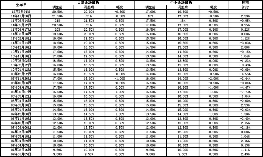 近年存款準(zhǔn)備金率調(diào)整及對(duì)股市影響