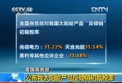 美國(guó)宣布對(duì)中國(guó)光伏反補(bǔ)貼初裁結(jié)果