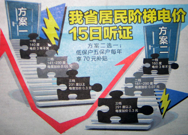 陜西省物價局18日組織22名各界代表召開“居民生活用電試行階梯電價聽證會”。此前陜西公布的兩套定價方案中的第一檔用電量分別為120度和150度,在中國內地已公布的方案中起步最... [詳細]