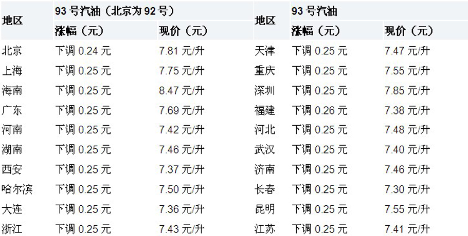 | 2012年11月16日 | 汽柴油價(jià)下調(diào)310元和300元 |