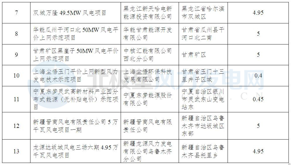 國家能源局剛剛公布風(fēng)電平價(jià)上網(wǎng)示范項(xiàng)目名單。風(fēng)電平價(jià)上網(wǎng)及張家口國際可再生能源技術(shù)創(chuàng)新試驗(yàn)實(shí)證基地、建投康保大英圖平價(jià)上網(wǎng)示范項(xiàng)目等13個(gè)項(xiàng)目(總計(jì)70.7萬千瓦)成為風(fēng)電平價(jià)上網(wǎng)“第一個(gè)吃螃蟹的人”。這些示范項(xiàng)目將不受省年度規(guī)模指標(biāo)限制;上網(wǎng)電價(jià)為當(dāng)?shù)孛弘姌?biāo)桿上網(wǎng)電價(jià),無補(bǔ)貼,不發(fā)綠證;各方力促不限電;項(xiàng)目建成電網(wǎng)與風(fēng)電企業(yè)簽購售協(xié)議。以下為通知及項(xiàng)目表: