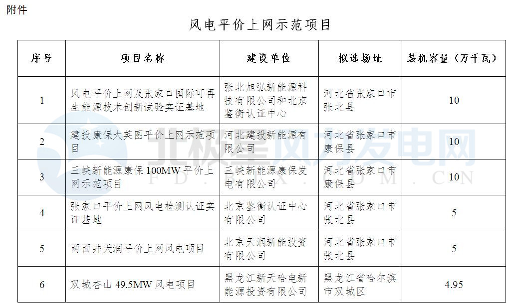 附件:風(fēng)電平價(jià)上網(wǎng)示范項(xiàng)目