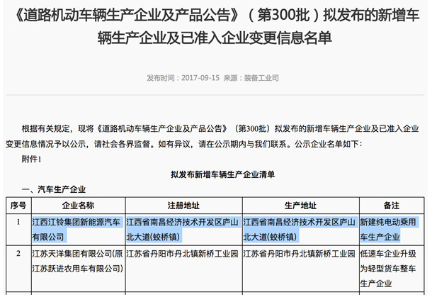 此次江西江鈴集團新能源汽車有限公司(簡稱“江鈴新能源”)進入擬發(fā)布新增車輛生產(chǎn)企業(yè)清單。公示截止到9月21日,如果屆時沒有變化,江鈴新能源將是繼北汽新能源、云度新能源之后,第三張新建新能源汽車資質(zhì)獲得者。