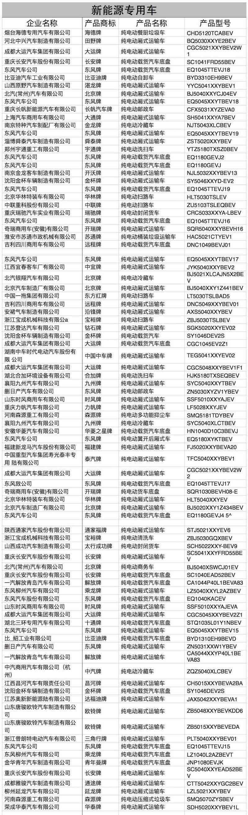 9月15日,工業(yè)和信息化部在官方網(wǎng)站公示了申報第300批《道路機動車輛生產(chǎn)企業(yè)及產(chǎn)品公告》新產(chǎn)品,本次共申報了320款新能源汽車產(chǎn)品。按動力類型分,純電動汽車產(chǎn)品300個、插電式混合動力產(chǎn)品16個、燃料電池產(chǎn)品4個;按產(chǎn)品類型分,新能源乘用車有26個、新能源客車有128個、新能源專用車有166個。新能源專用車產(chǎn)品申報數(shù)量首次超過新能源客車,成為本批次產(chǎn)品公示中數(shù)量占比最大的領(lǐng)域。