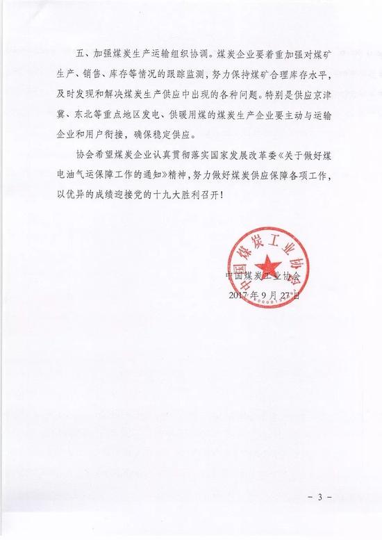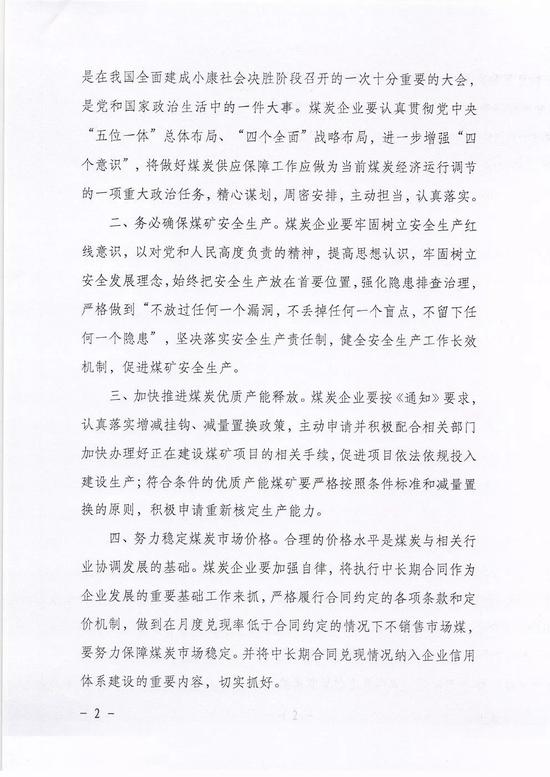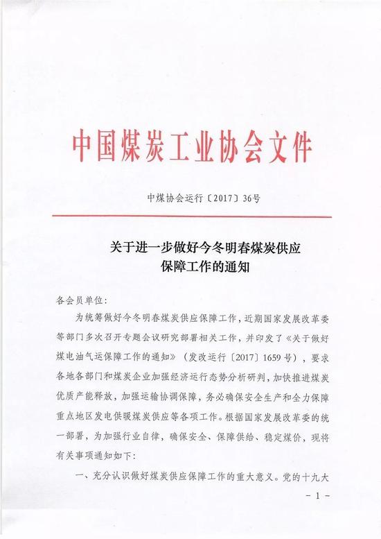 中國(guó)煤炭運(yùn)銷(xiāo)協(xié)會(huì)發(fā)布《關(guān)于進(jìn)一步做好今冬明春煤炭供應(yīng)保障工作的通知》,提出加快推進(jìn)煤炭?jī)?yōu)質(zhì)產(chǎn)能釋放,努力穩(wěn)定煤炭市場(chǎng)價(jià)格。