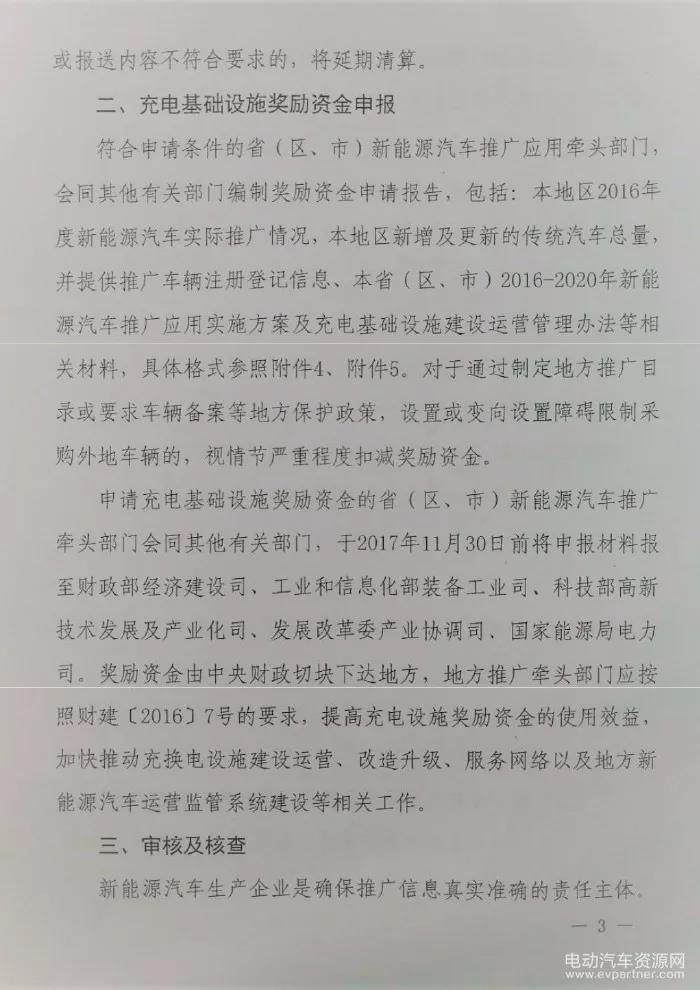 充電設施方面,符合申請條件的省(區(qū)、市)新能源汽車推廣應用牽頭部門,會同其他有關(guān)部門編制獎勵資金申請報告,包括:本地區(qū)2016年度新能源汽車實際推廣情況,本地區(qū)新增及更新的傳統(tǒng)汽車總量,并提供推廣車輛注冊登記信息、本省(區(qū)、市)2016-2020年新能源汽車推廣應用實施方案及充電基礎(chǔ)設施建設運營管理辦法等相關(guān)材料。通知還強調(diào),對于通過制定地方推廣目錄或要求車輛備案等地方保護政策,設置或變相設置障礙限制采購外地車輛的,視情節(jié)嚴重程度扣減獎勵資金。充電設施獎勵資金申報截止期為2017年11月30日。
