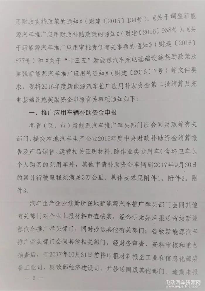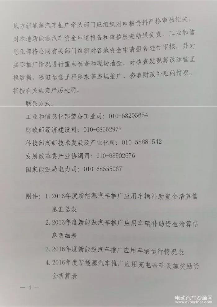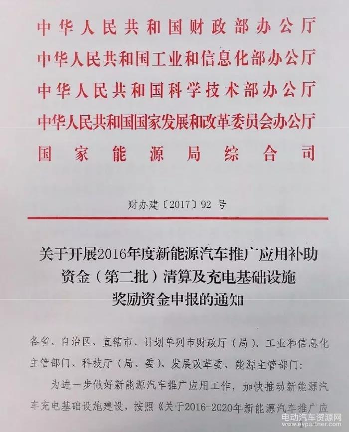 工信部、發(fā)改委、財政部、科技部、能源局5部門聯(lián)合發(fā)布《關(guān)于開展2016年度新能源汽車推廣應用補助資金(第二批)清算及充電基礎(chǔ)設施獎勵資金申報的通知》,要求各省(區(qū)、市)新能源汽車推廣牽頭部門會同財政等部門,提交本地汽車生產(chǎn)企業(yè)2016年度中央財政補助資金清算報告及產(chǎn)品銷售、運營相關(guān)證明材料。