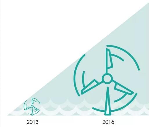 (2)離岸風(fēng)電投資穩(wěn)步上升,2013—2016年增長(zhǎng)4倍,并有望進(jìn)一步增長(zhǎng)。
