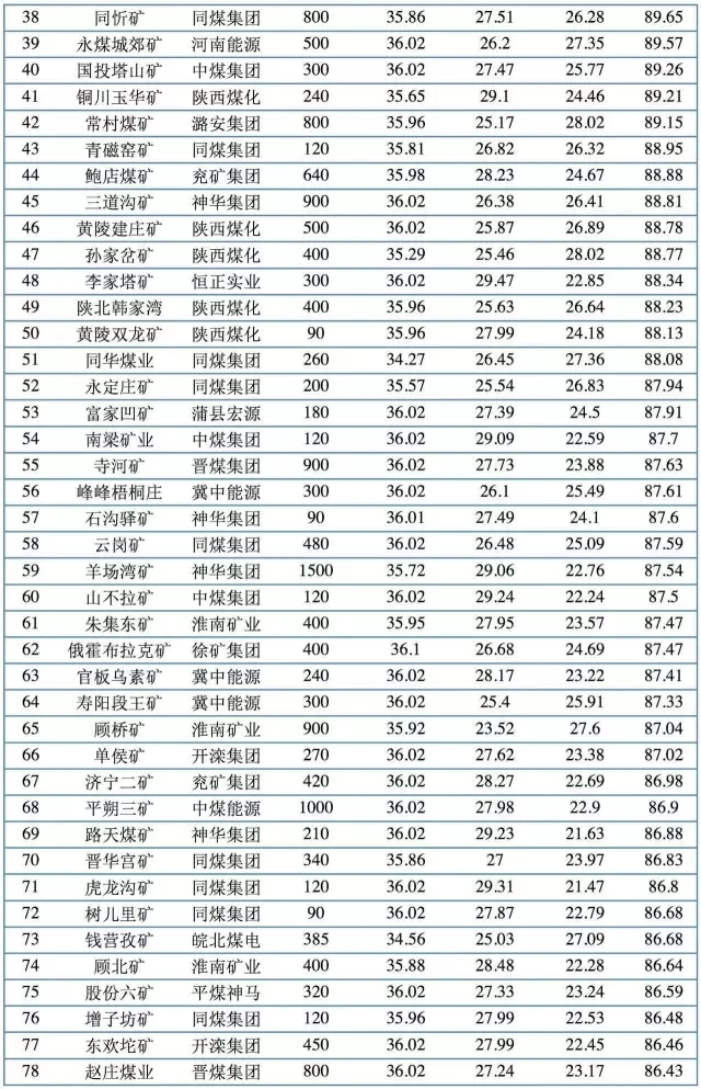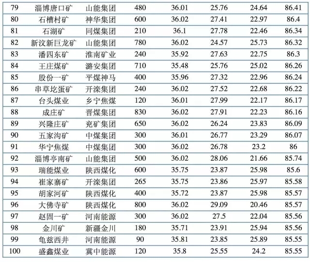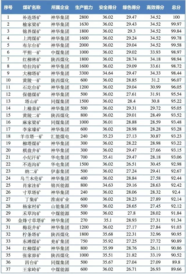 2017中國煤炭企業(yè)科學(xué)產(chǎn)能(綜合得分)百強(qiáng)排行榜