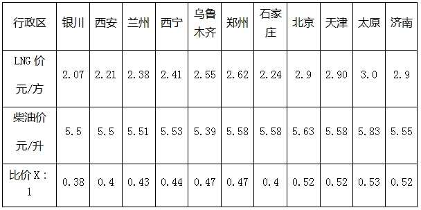 表二、LNG“油氣比價”處于合理區(qū)間(與柴油相比0.5:1及其以下)的部分地區(qū)一覽表