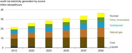 2012-2040年全球發(fā)電能源結(jié)構(gòu)變化