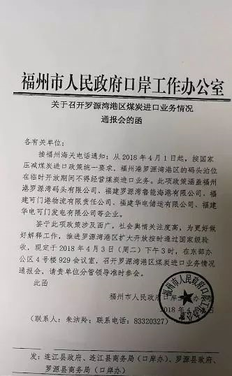 可門和東吳碼頭與昨日收到口頭通知,禁止進口煤卸貨,在卸船只不受影響。