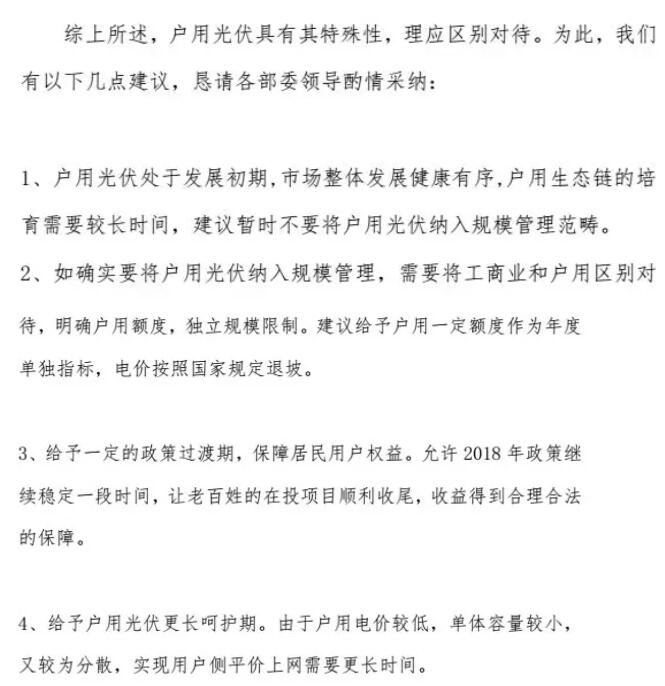 行業(yè)內(nèi)的戶用標(biāo)準(zhǔn)化聯(lián)盟也向中國光伏行業(yè)協(xié)會及三部委提出了自己的意見: