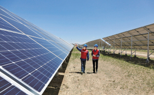 “綠電9日”的關(guān)鍵,是要在確保電網(wǎng)安全的前提下,保證電力全清潔能源供應(yīng)。圖為青海海南供電公司黨員服務(wù)隊(duì)服務(wù)光伏企業(yè)。 王靜 攝