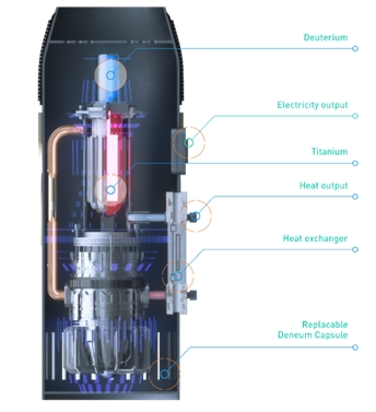 Deneum公司預計,在“電站”裝置中放入價值20美元的氘和鈦,便可為一座100平米的房屋提供一年電能,而且在此期間不需要重新加注燃料或者提供其他服務。這一能源利用水平可以超過目前所有能源形式,包括傳統(tǒng)核能。此外,這一裝置有助于環(huán)保,還可再生。