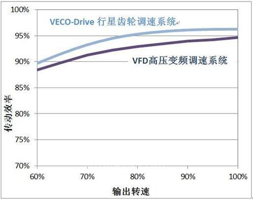 VECO-Drive具備卓越的效率(見(jiàn)上圖)。相比高壓變頻器系統(tǒng)(VFD)而言,VECO-Drive方案各工況點(diǎn)的傳動(dòng)效率平均高出約兩個(gè)百分點(diǎn)。需要指出的是,傳動(dòng)效率的提升是在保持了主機(jī)30年使用壽命和長(zhǎng)達(dá)8年的大修間隔的前提下實(shí)現(xiàn)的。在大功率、高轉(zhuǎn)速傳動(dòng)調(diào)速領(lǐng)域,VECO-Drive在"可靠之美"的基礎(chǔ)上問(wèn)鼎"效率之最",這將讓我們的電力、石油和化工行業(yè)的轉(zhuǎn)動(dòng)設(shè)備能夠以前所未有的高效率安全穩(wěn)定的運(yùn)行。