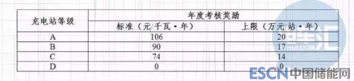 一是日??己霜剟睿疵咳齻€月對公用充電站的平均充電收費標(biāo)準(zhǔn)、利用率等經(jīng)營情況進行考核評價,引導(dǎo)企業(yè)通過優(yōu)化收費標(biāo)準(zhǔn)、創(chuàng)新運營模式等方式提質(zhì)增效。根據(jù)考核情況,對考核評價最好的A級充電站給予每度電0.2元的獎勵,獎勵上限為1500度/千瓦·年。