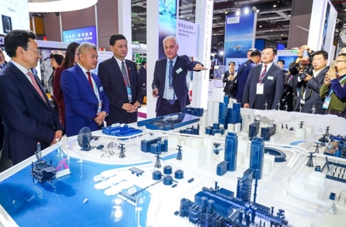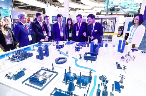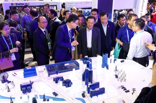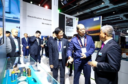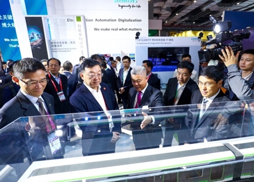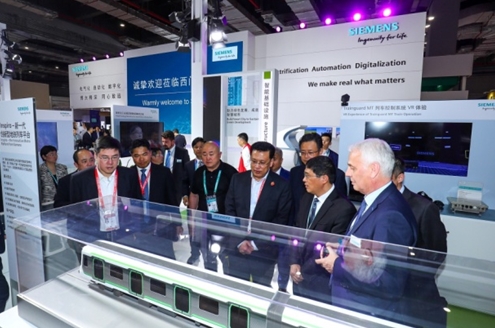 西門子大中華區(qū)首席執(zhí)行官赫爾曼(Lothar Herrmann)陪同浙江省省長袁家軍參觀西門子展臺。