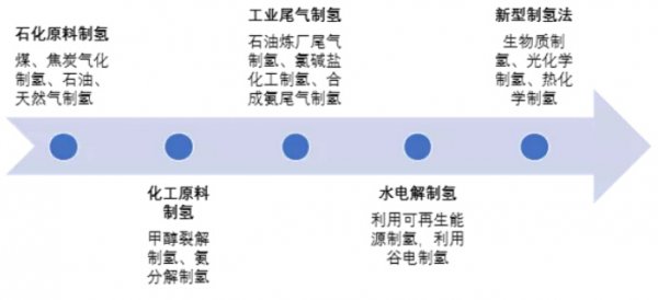 制氫方法是將存在于天然或合成的化合物中的氫元素,通過化學(xué)的過程轉(zhuǎn)化為氫氣的方法。根據(jù)氫氣的原料不同,氫氣的制備方法可以分為非再生制氫和可再生制氫,前者的原料是化石燃料,后者的原料是水或可再生物質(zhì)。制備氫氣的方法目前較為成熟,從多種能源來源中都可以制備氫氣,每種技術(shù)的成本及環(huán)保屬性都不相同。主要分為五種技術(shù)路線:工業(yè)尾氣副產(chǎn)氫、電解水制氫、化工原料制氫、石化資源制氫和新型制氫方法等。