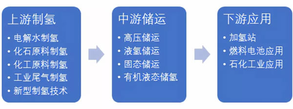 氫能被認(rèn)為是最理想的新能源,最有希望成為能源的終極解決方案。氫能相比于其他能源方案有顯著的優(yōu)勢:儲量大、比能量高(單位質(zhì)量所蘊(yùn)含的能量高)、污染小、效率高、可貯存、可運輸、安全性高等諸多優(yōu)點,受到了各國的高度重視。氫能產(chǎn)業(yè)鏈三大環(huán)節(jié),每個環(huán)節(jié)都有很高的技術(shù)壁壘和技術(shù)難點,目前上游的電解水制氫技術(shù)、中游的化學(xué)儲氫技術(shù)和下游的燃料電池在車輛和分布式發(fā)電中的應(yīng)用被廣泛看好。