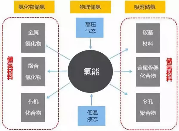 儲氫材料種類非常多,主要可分為物理吸附儲氫和化學(xué)氫化物儲氫。其中物理吸附儲氫又可分為金屬有機(jī)框架(MOFs)和納米結(jié)構(gòu)碳材料,化學(xué)氫化物儲氫又可分為金屬氫化物(包括簡單金屬氫化物和簡單金屬氫化物),非金屬***(包括硼氫化物和有機(jī)氫化物)。