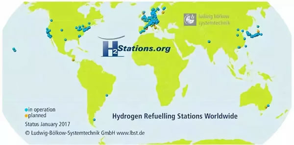 世界各地都在大力推進(jìn)加氫站的建設(shè),國內(nèi)加氫站運營指日可待。加氫站的建設(shè)至關(guān)重要,對于汽車企業(yè)來說,沒有能源站,就沒辦法賣車。據(jù)LBST于2017年2月21日發(fā)布了第9期全球加氫站統(tǒng)計報告,2016年全球新增92座加氫站,創(chuàng)增長數(shù)新高。截止到2017年1月,全球正在運營的加氫站達(dá)到274座,其中有4座是2017年初開放。