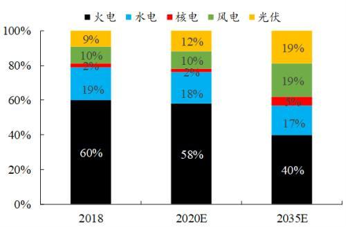 根據(jù)國泰君安公用事業(yè)團隊的預測,2035年全國電源裝機將達到36億千瓦,其中清潔能源裝機占比將由2018年的40%提升至60%,對火電的擠壓效應將持續(xù)增強。