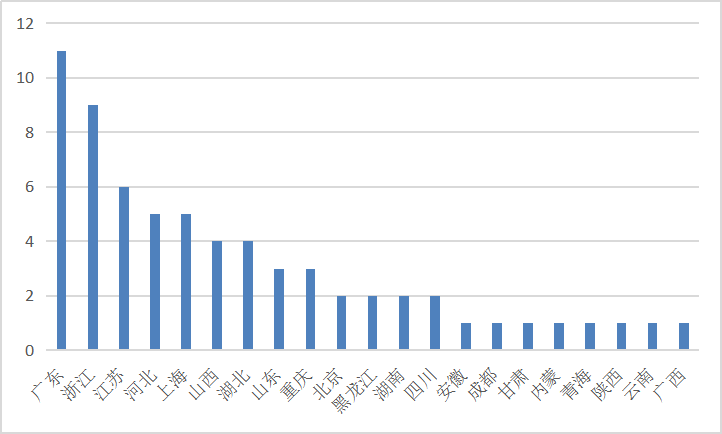 圖3 2019年上半年各省份氫能投資項(xiàng)目數(shù)量情況(單位:個(gè))來源:氫云鏈整理