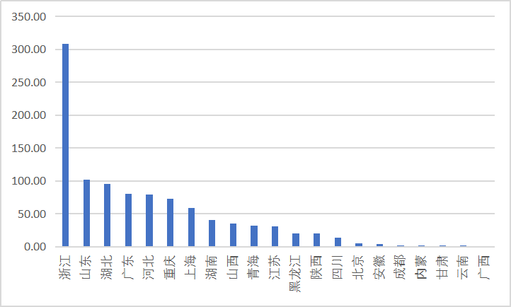 圖4 2019年上半年各省份氫能投資項(xiàng)目總金額情況(單位:億元)來源:氫云鏈整理