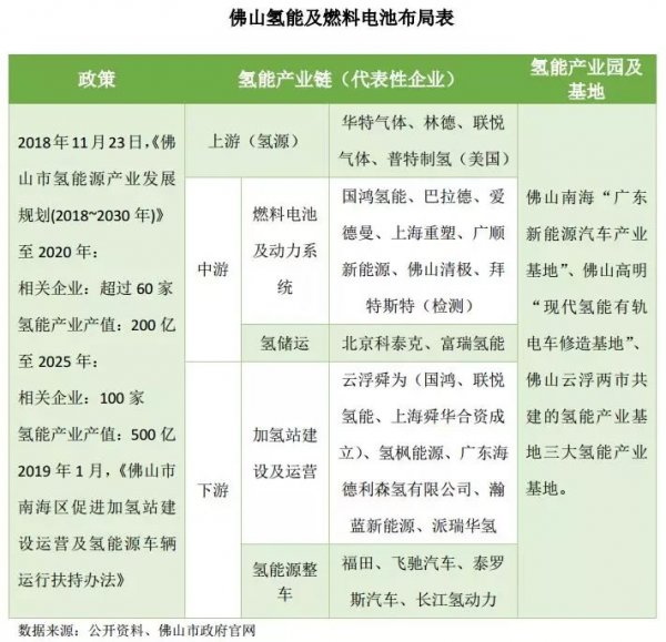 佛山是中國(guó)重要的制造業(yè)基地之一,在氫能與燃料電池產(chǎn)業(yè)方面,佛山市是政策支持力度最大的城市,目前已建立了完善的規(guī)劃和政策體系,整體規(guī)劃、氫能源汽車補(bǔ)貼管理辦法和加氫站財(cái)政補(bǔ)貼辦法均領(lǐng)先全國(guó),并率先探索建立了國(guó)內(nèi)首個(gè)商用加氫站審批、建設(shè)流程。