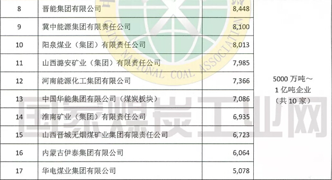 為深入貫徹落實(shí)習(xí)近平總書記關(guān)于能源安全新戰(zhàn)略的重要論述,推動(dòng)現(xiàn)代化煤炭經(jīng)濟(jì)體系建設(shè),促進(jìn)煤炭工業(yè)高質(zhì)量發(fā)展,發(fā)揮骨干企業(yè)帶頭示范作用,提高行業(yè)凝聚力和社會(huì)影響力,中國煤炭工業(yè)協(xié)會(huì)參照國際通行做法,通過企業(yè)自主申報(bào)與協(xié)會(huì)統(tǒng)計(jì)指標(biāo)數(shù)據(jù)相結(jié)合的方式,按2018年度煤炭產(chǎn)量為標(biāo)準(zhǔn)排出了2019中國煤炭企業(yè)煤炭產(chǎn)量50強(qiáng),現(xiàn)予以發(fā)布。