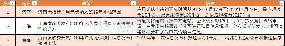 “沉睡多時(shí)”的戶用光伏市場(chǎng),7月逐漸回暖。河北、河南分別調(diào)整了戶用光伏補(bǔ)貼范圍及明確了戶用光伏納入2019年補(bǔ)貼范圍,而海南戶用光伏市場(chǎng)明確了報(bào)送流程及報(bào)送時(shí)間。同時(shí),上海地區(qū)戶用光伏項(xiàng)目也在緊鑼密鼓的籌備中。