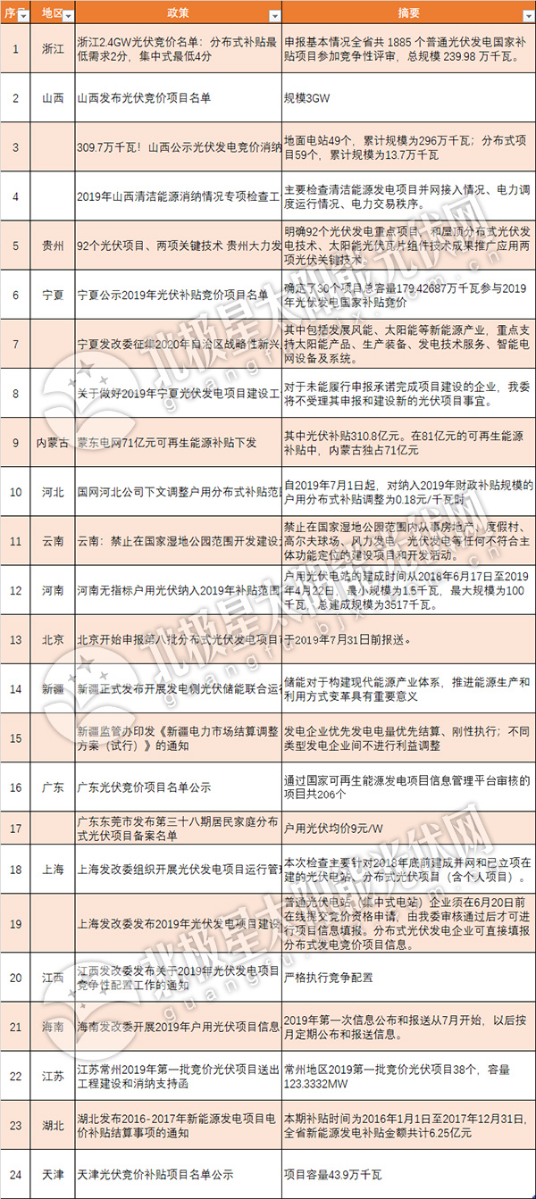 7月,國家能源局公布2019年光伏發(fā)電項(xiàng)目國家補(bǔ)貼競(jìng)價(jià)結(jié)果,浙江、山西、寧夏、廣州、天津、河北等共計(jì)22個(gè)省項(xiàng)目納入2019年國家競(jìng)價(jià)補(bǔ)貼范圍,其中,申報(bào)項(xiàng)目最多的省份當(dāng)屬浙江,達(dá)到1670個(gè),寧夏僅有27個(gè)項(xiàng)目。
