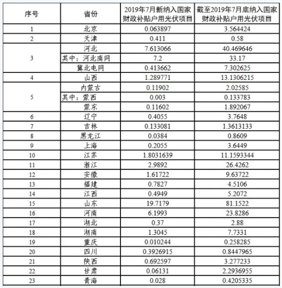 8月15日,國家能源局公布8月戶用光伏項目信息顯示,2019年7月新納入國家財政補貼規(guī)模戶用光伏項目總裝機容量為48.39萬千瓦。截至2019年7月底,全國累計納入2019年國家財政補貼規(guī)模戶用光伏項目裝機容量為269.72萬千瓦。