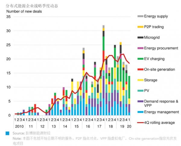 BNEF的獨家數(shù)據(jù)庫“分布式能源企業(yè)戰(zhàn)略動態(tài)追蹤工具(DecentralizedEnergyStrategyMapper)”涵蓋了50余家企業(yè)在分布式能源產(chǎn)品和服務方面的動態(tài)。報告全文呈現(xiàn)了2020年第一季度的數(shù)據(jù)更新,同時提供深入分析,通過數(shù)據(jù)發(fā)現(xiàn)分布式能源企業(yè)戰(zhàn)略的發(fā)展趨勢,本文為結(jié)論摘要。