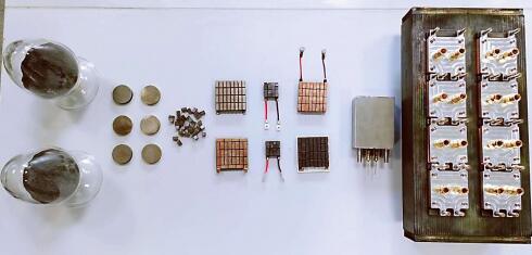在制備車間的產(chǎn)品展臺上,擺放著不同形態(tài)的熱電材料、電極模塊以及熱電器件樣品。研發(fā)人員告訴記者,據(jù)行業(yè)調(diào)研和公開資料顯示,國內(nèi)外熱電轉(zhuǎn)換效率普遍在8%以下,新奧科研團隊經(jīng)過不懈探索,已經(jīng)成功突破行業(yè)技術(shù)瓶頸,擁有了高性能材料組分的配方,掌握了相關(guān)材料及模塊的制備核心技術(shù),獨創(chuàng)了熱電模塊防擴散層和穩(wěn)固焊接工藝,從而具備了高性能熱電材料、模塊、器件全流程生產(chǎn)和檢測能力。