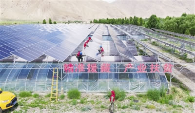 7月15日,在西藏山南市瓊結縣拉玉鄉(xiāng),國網(wǎng)安徽省電力有限公司和國網(wǎng)湖北襄陽供電公司援藏幫扶人員對白那村“農(nóng)光互補”發(fā)電設備進行檢修維護,助力高原農(nóng)民脫貧致富。