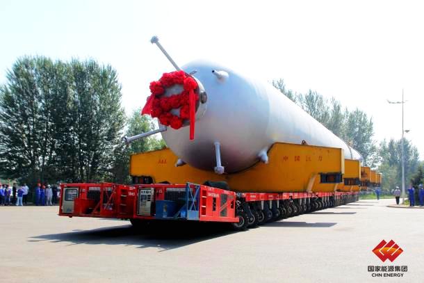 圖為運(yùn)往吊裝現(xiàn)場的國產(chǎn)化百萬噸級煤液化反應(yīng)器
